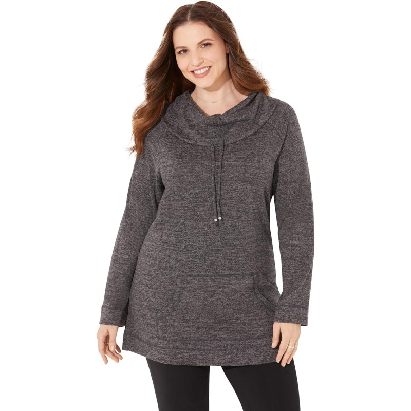 Catherines Women’s Plus Size Impossibly Soft Cowlneck Top(Heather Oatmeal)