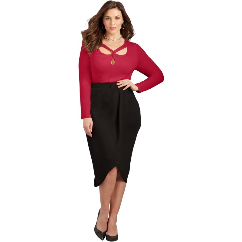 Catherines Women’s Plus Size Petite Curvy Collection French Twist Top(Classic Red)